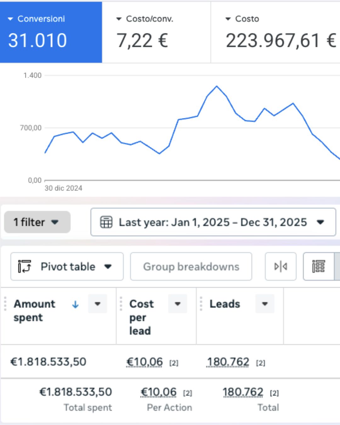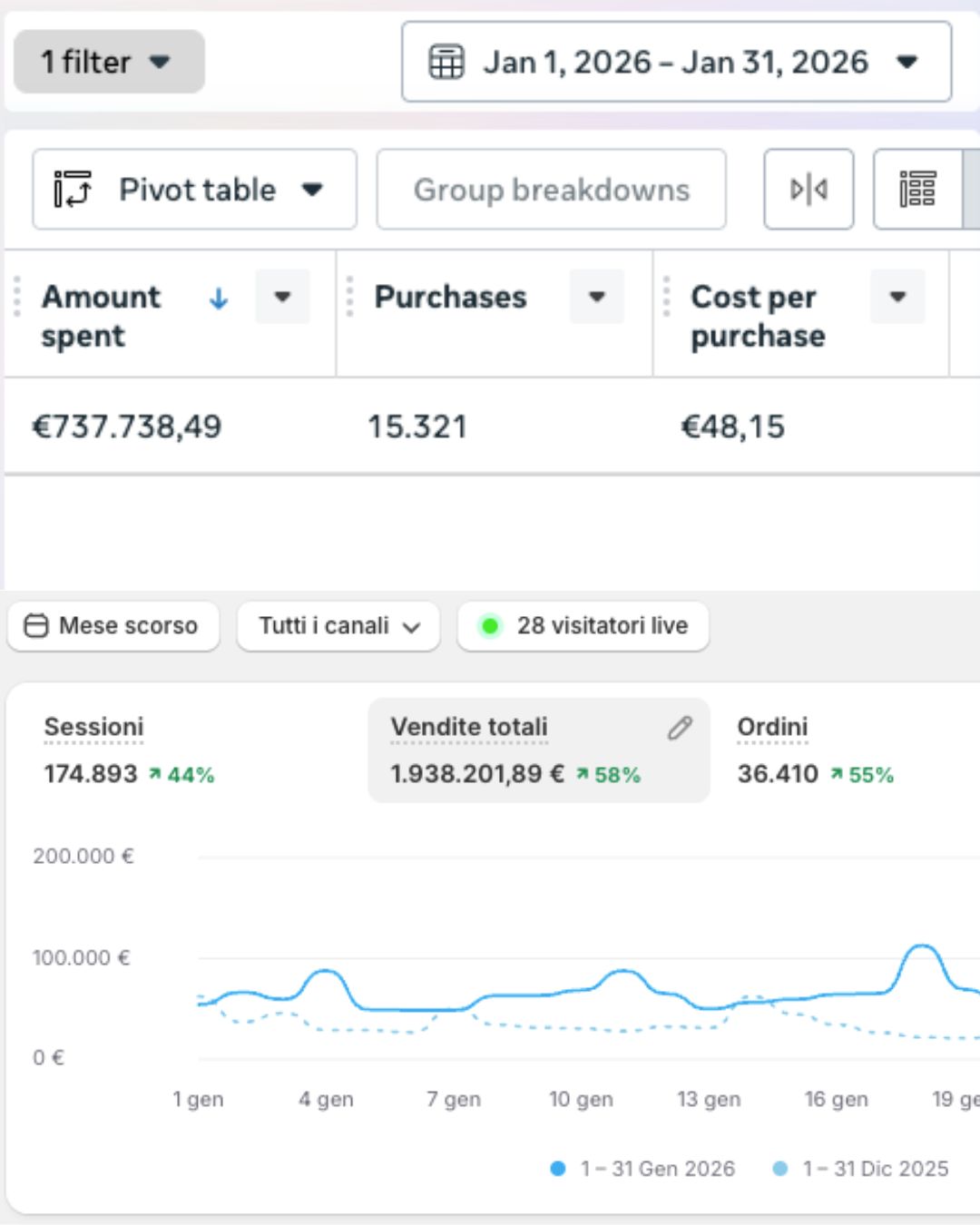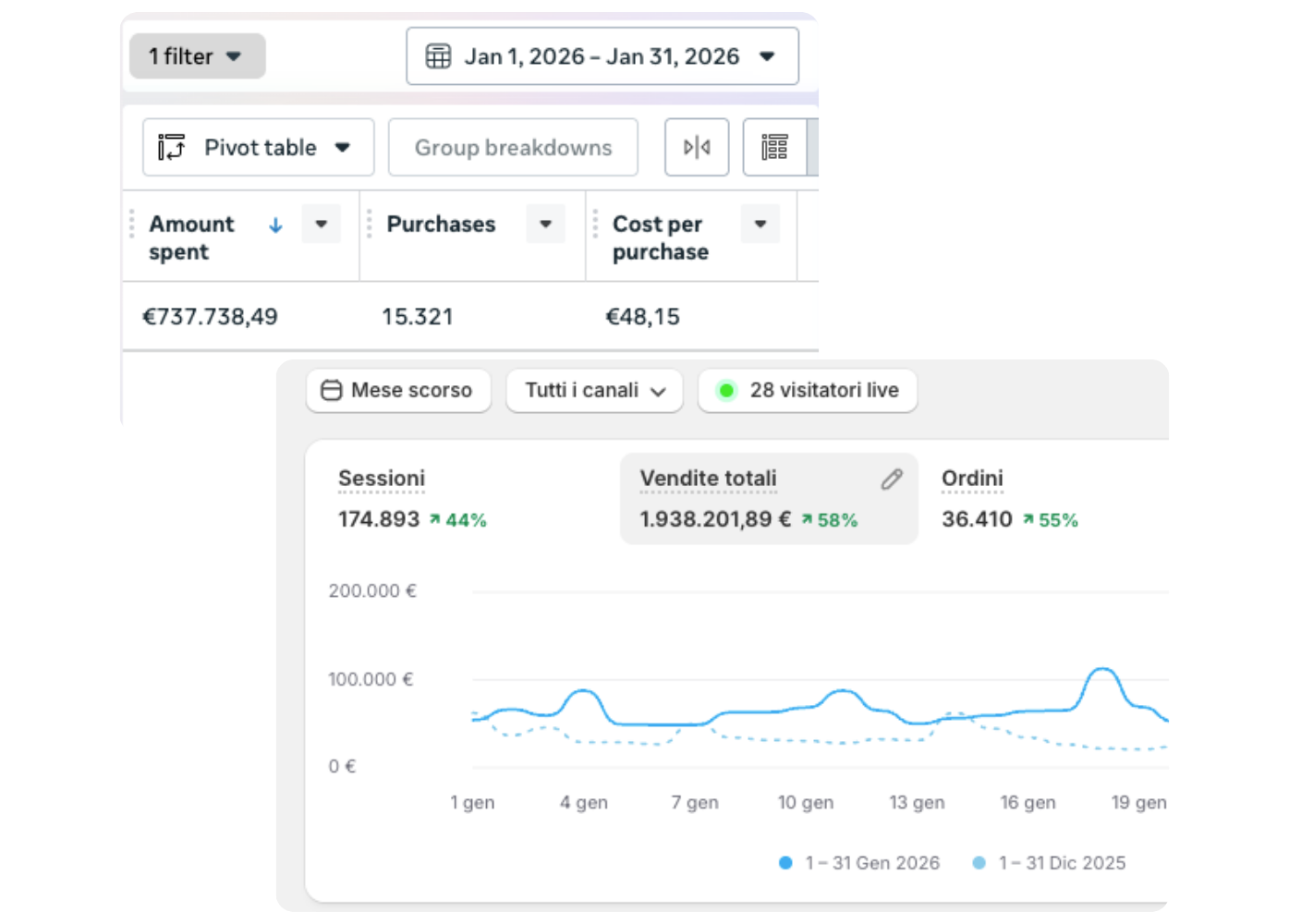 Da € 0 a € 44.000 in un mese con il lancio del nuovo store e di nuove offerte pensate per le Buyer Personas identificate. Il tutto con Media Buying Meta e Produzione Creativa.