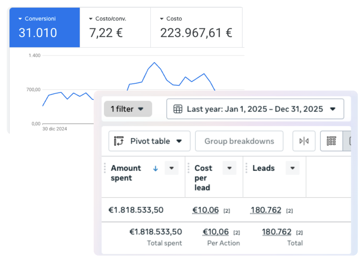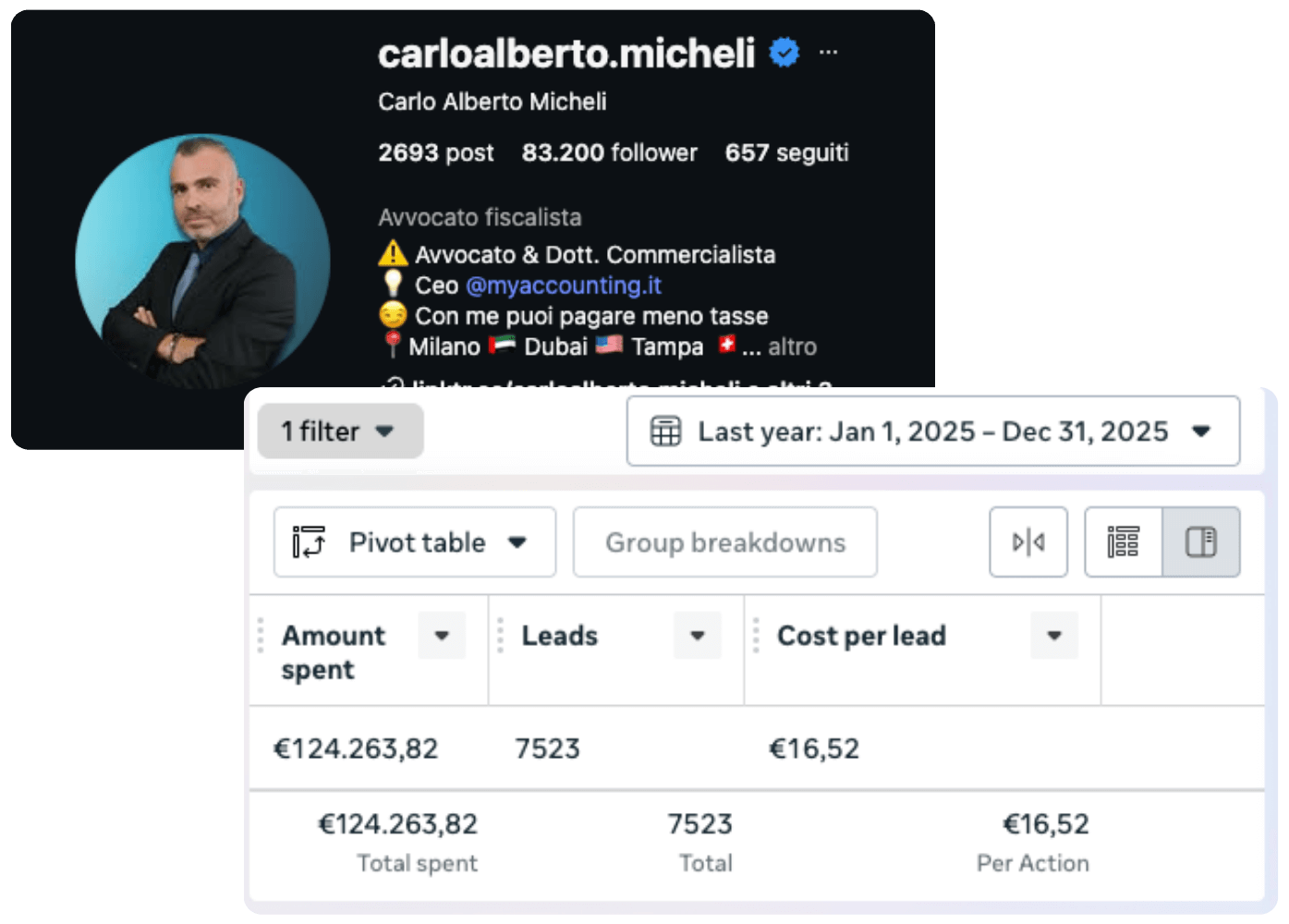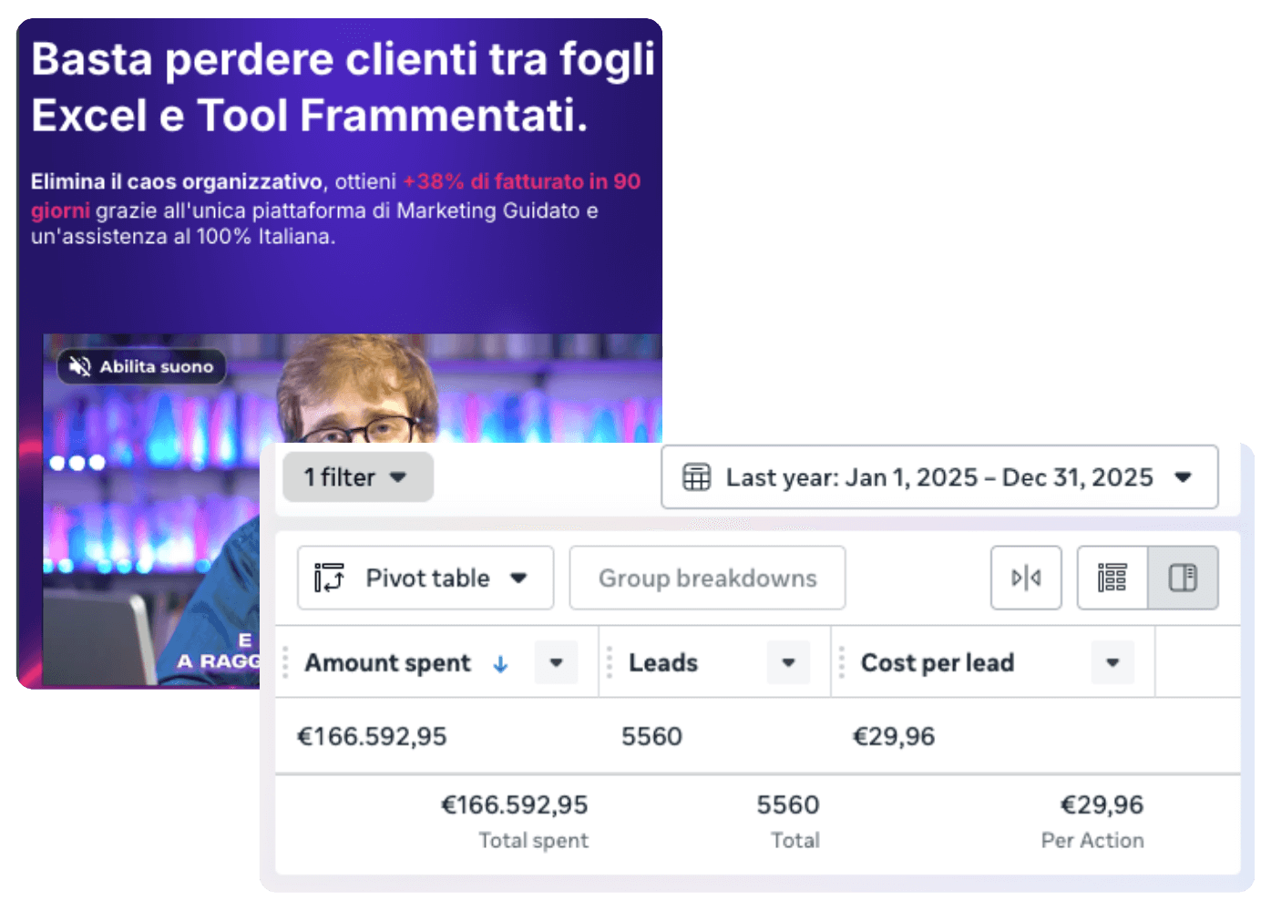 Da € 0 a € 44.000 in un mese con il lancio del nuovo store e di nuove offerte pensate per le Buyer Personas identificate. Il tutto con Media Buying Meta e Produzione Creativa.
