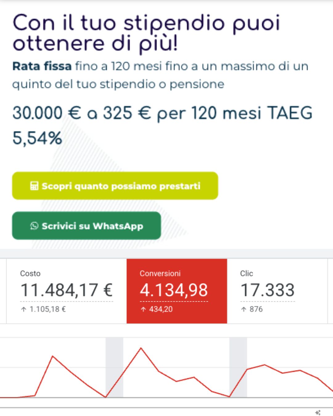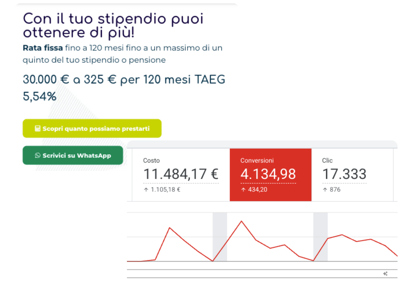 Funnel di qualifica lead con preventivatore e +5000 contatti mese generati con tasso di erogazione prestiti in crescita del 12% YoY.