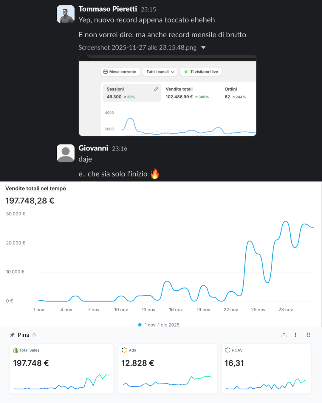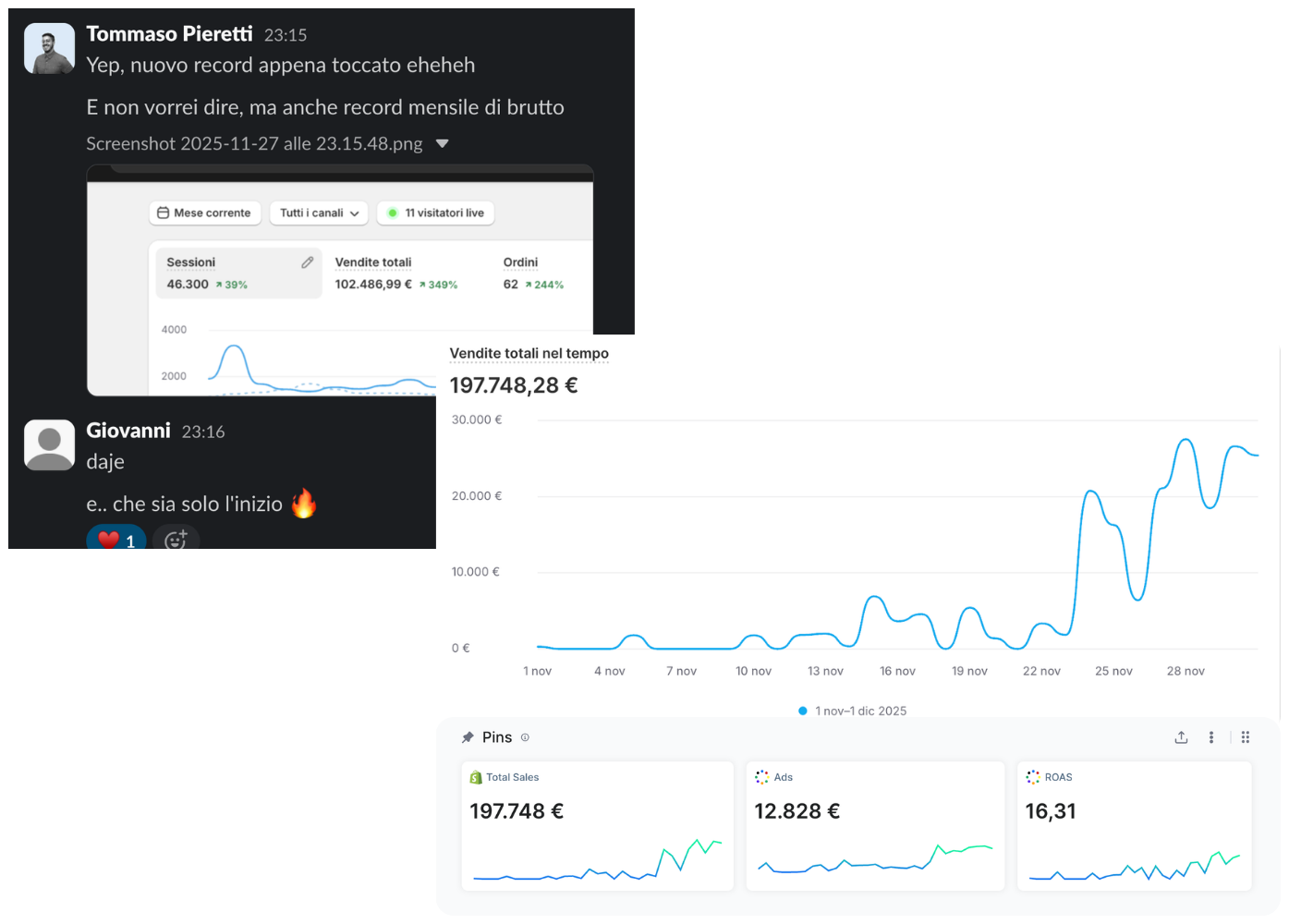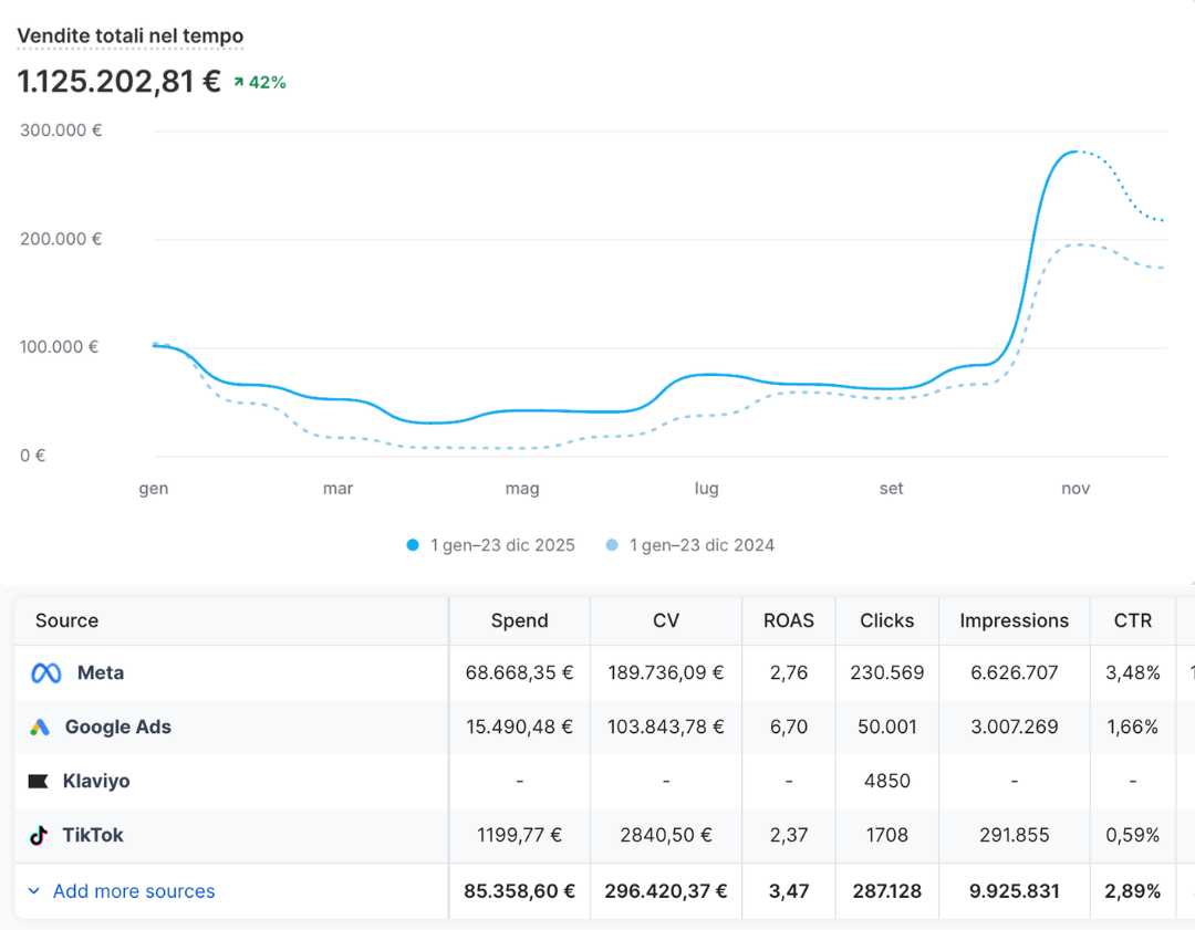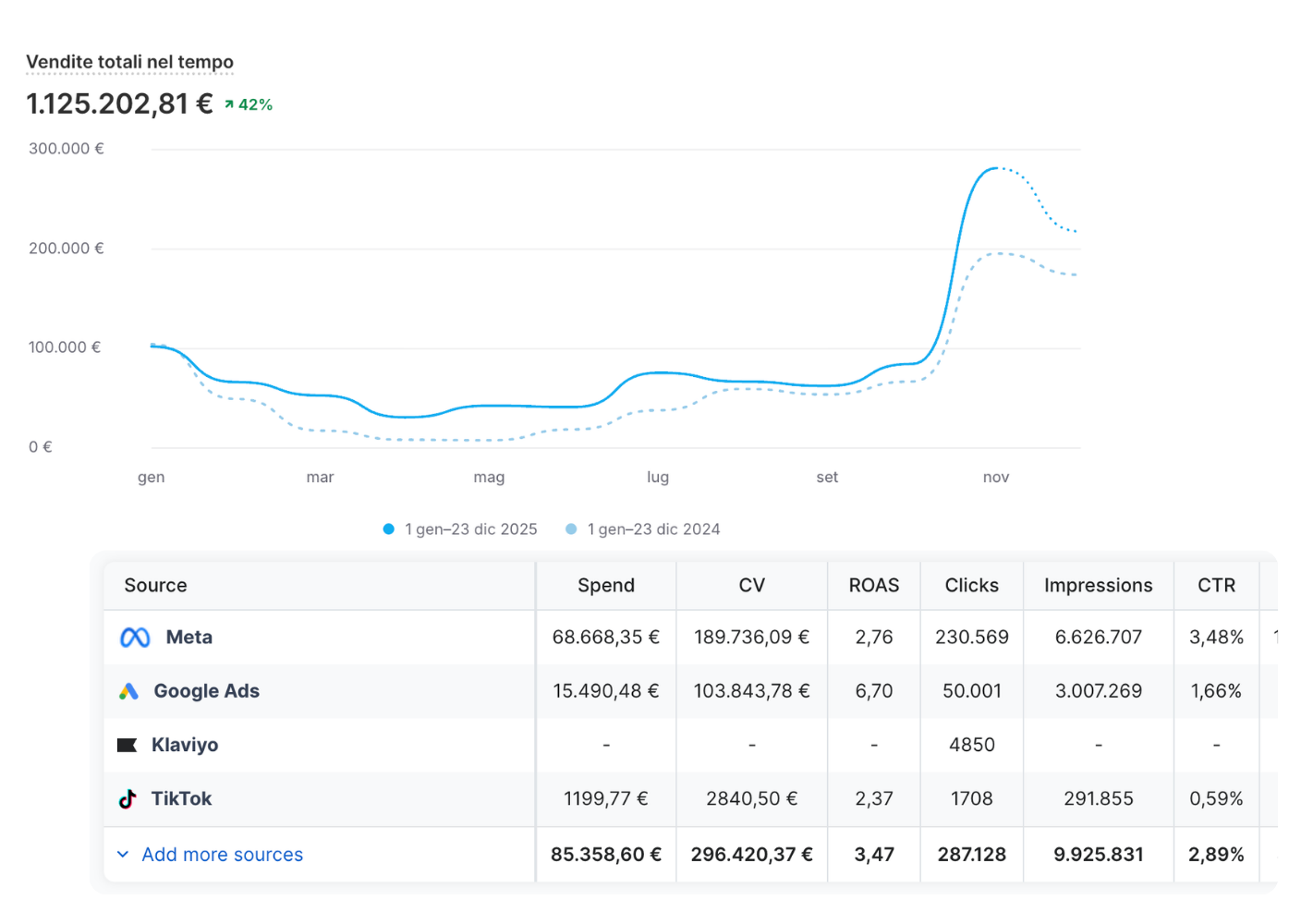 BFCM da € 280K e fatturato complessivo € 1.1M (+42% YoY) per un Brand Fashion, senza bruciare cassa e con sconti massimi del 30%.